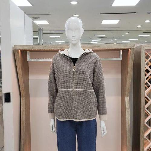 [해리앤]DP01 울혼방 체크 후드 니트 집업 YPWP1N01