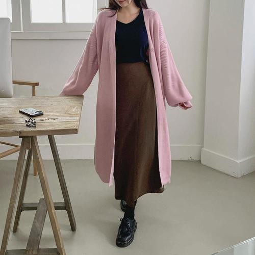 [옷자락]여성 캐릭터 프린트 골지 롱 가디건