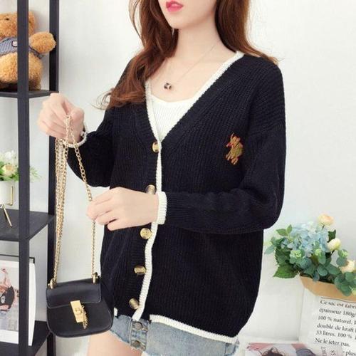 [셀럽하우스]귀여운 BKCK0396 캐릭터 로고 가디건 여자 간절기 가을옷