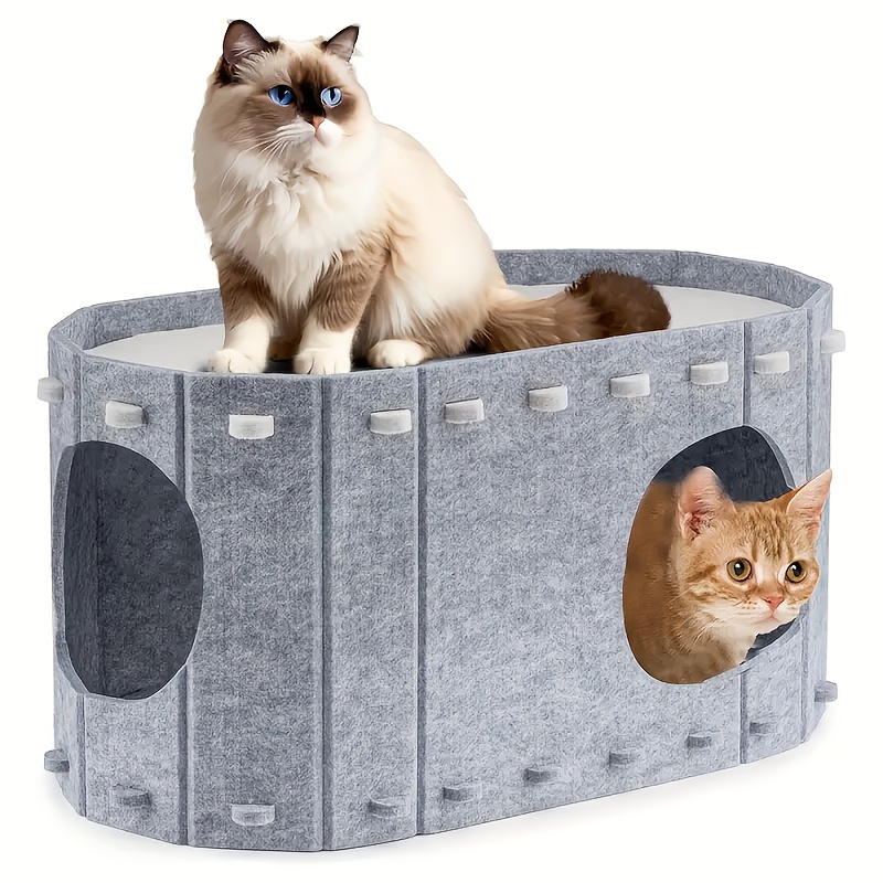 TEMU 사계절용 고양이 터널 & 은신처 하우스 - 터널 입구, 부드러운 펠트 내부 & 내구성 있는 카펫 터널 - 간편 조립, 무취, 새끼 고양이 & 고양이용 카펫 - 모던 펫 토이, 스크래치 방지 고양이 트리