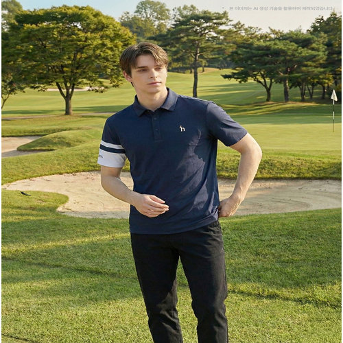 헤지스 골프 [ONLINE EXCLUSIVE] 네이비 남성 소매 포인트 반팔 카라 티셔츠 (HUTS6B904N5)