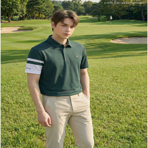 헤지스 골프 [ONLINE EXCLUSIVE] 그린 남성 소매 포인트 반팔 카라 티셔츠 (HUTS6B904E3)