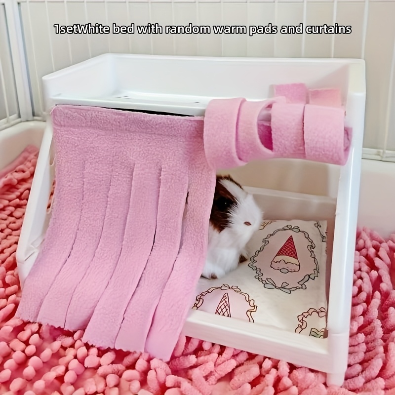 TEMU 소형 동물 햄스터 포근한 침대 세트 - 담요와 문 커튼, 소형 애완동물용 매트리스, 조립이 쉬운 애완동물 침대, 소형 동물용 편안한 플라스틱 코너 은신처, 소형 애완동물 용품 포함