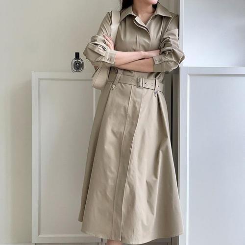 [신상오픈런]트렌치원피스 셔츠핏 플레어 벨티드 햅번 맥시 긴팔 (30487628)