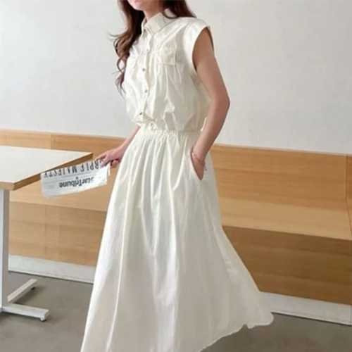 여름 A라인 반집업 2색 여성 허리라인 원피스 드레스 벨트 롱