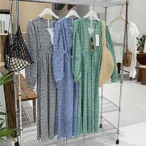 브이넥 플라워 롱원피스 6종 꽃무늬 드레스 밴딩 허리라인 스커트 여자친구룩