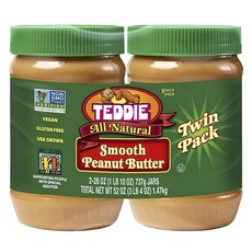 테디 땅콩버터 슈퍼청키 스무스 454g x 2통 100% 미국산 땅콩 비건 무설탕 무첨가