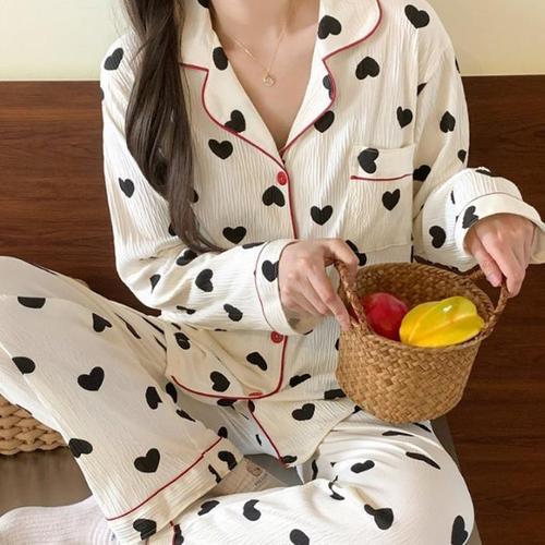 [신상오픈런]지지미 바인딩 키치 긴팔 긴바지 하트파자마 투피스 (30487021)