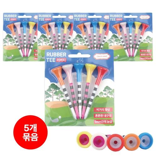 콜리스 골프 눈금 높이조절 러버 골프티 고무헤드 5개묶음