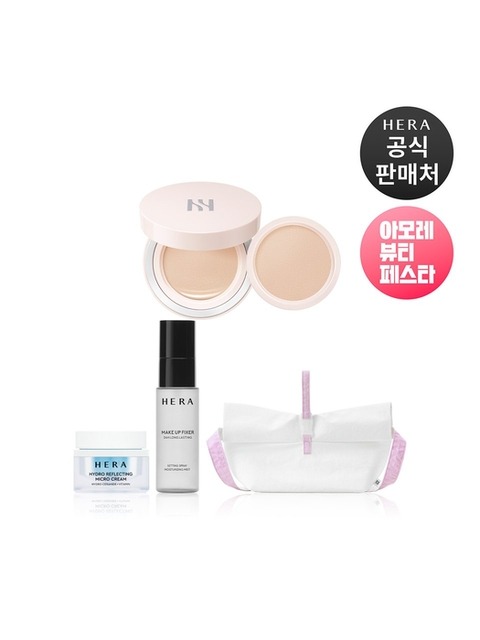 헤라 블랙쿠션 파운데이션 21C1 본품&리필 기획+증정(헤라 메이크업 픽서 30ml, 1개+딥 클렌징 오일 50ml, 1개+클렌징폼, 1개+거울, 1개+피크닉 매트, 1개)