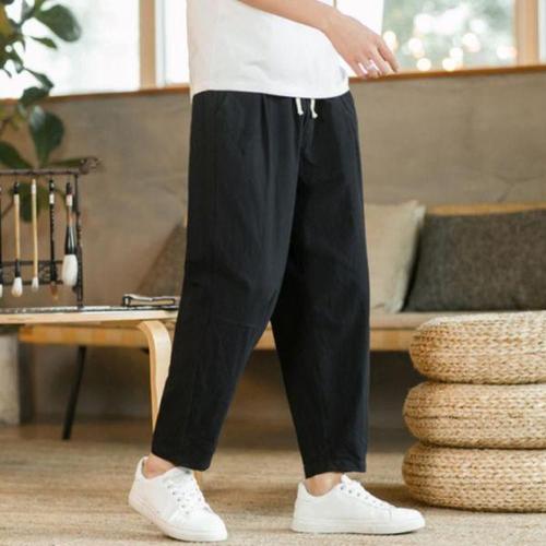남성용 9 분 바지, 초박형 섹션 아이스 실크, 쿨 트렌드, 느슨한 코튼 린넨 캐주얼 바지, 스트레이트 린넨 바지, 여름