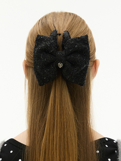 [브이브이브이] 빅 리본 글리터 트위드 헤어 집게핀 _ 블랙