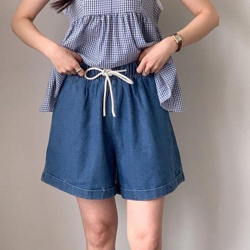 [다잇템][다잇템] 여자 미니멀리즘 클래식 넓은 여름데님팬츠 고무줄 청반바지_20860022_588872
