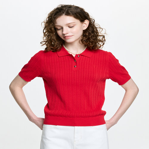 헤지스 여성 변형 케이블 티카라 반팔 풀오버 레드 (HSSW6BC32R2)