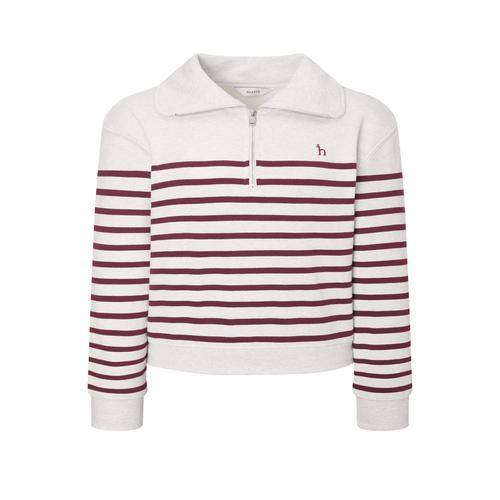 헤지스 여성 [아이코닉] 루즈핏 스트라이프 반집업 스웨트셔츠 멜란지그레이 (HSTS5D802G1)