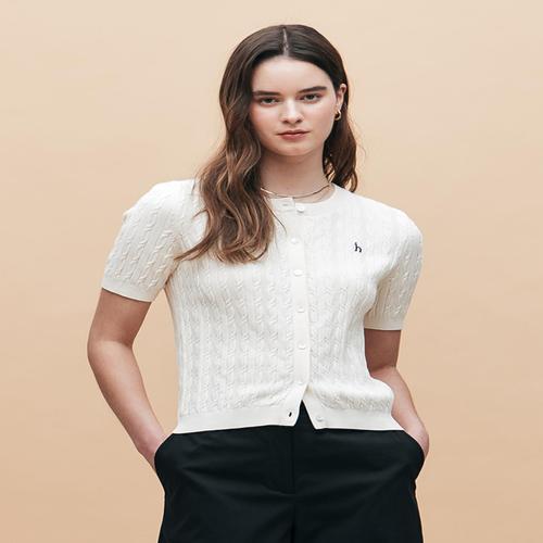 헤지스 여성 면 라운드넥 케이블 반소매가디건 아이보리 (HSSW5AC22IV)