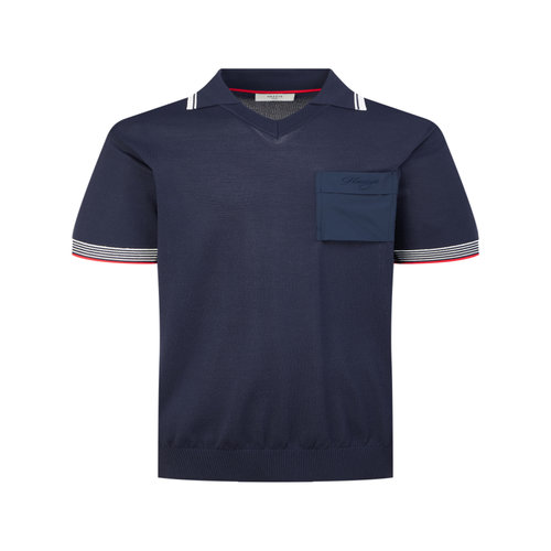 헤지스 골프 네이비 남성 포켓 포인트 카라 반팔 스웨터 (HUSW6B352N3)