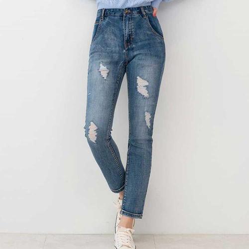 VWBQNZ 못 박힌 구슬 청바지 여성 봄/여름 새로운 다목적 구멍 깨는 탄성 스키니 펜슬 바지 여성 캐주얼 데님 바지