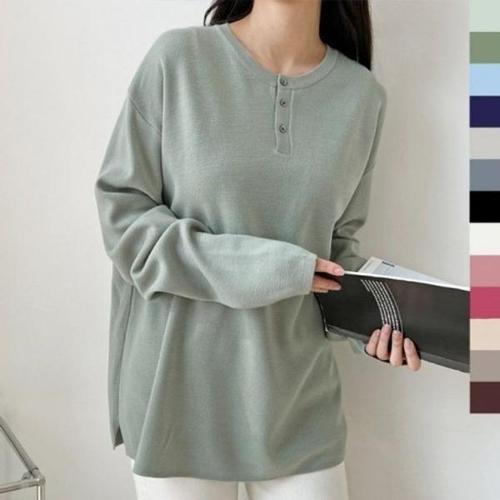 [엄지척]뽀얌 여자 오버핏 데일리 헨리넥 기본니트_19808226_667501