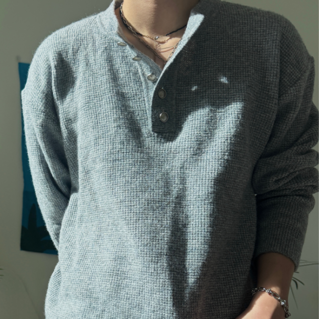 남성 헨리넥 니트 울 단추 긴팔 베이직 스웨터