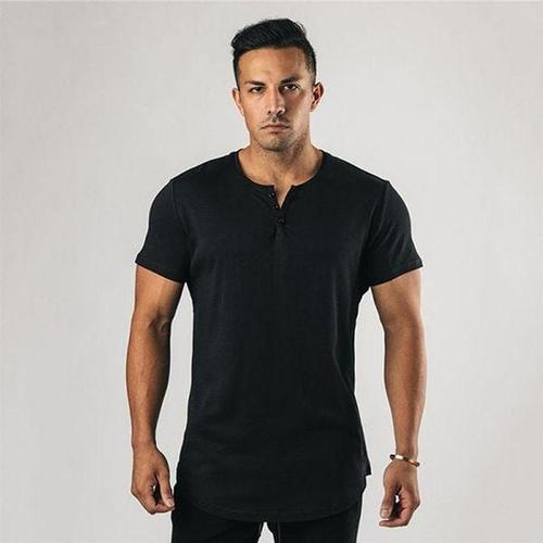 남성용 베이직 헨리넥 머슬핏 반팔티셔츠 T2869