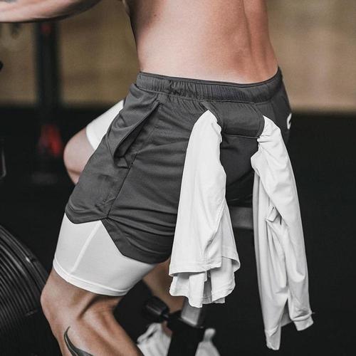 남성용 러닝 반바지 2 in 1 이중 레이어 스포츠 반바지 운동복 헬스 피트니스 숏팬츠 트레이닝 조깅 바지 남성 의류