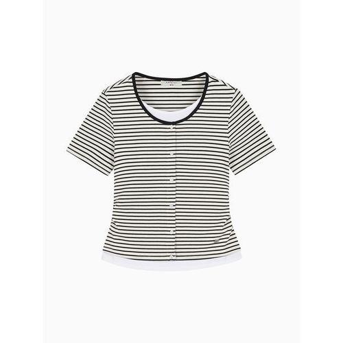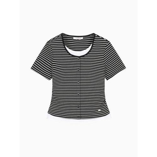 [행텐]여성 스트라이프 가디건 레이어드 반팔 티셔츠_100(10570-131-411-69)
