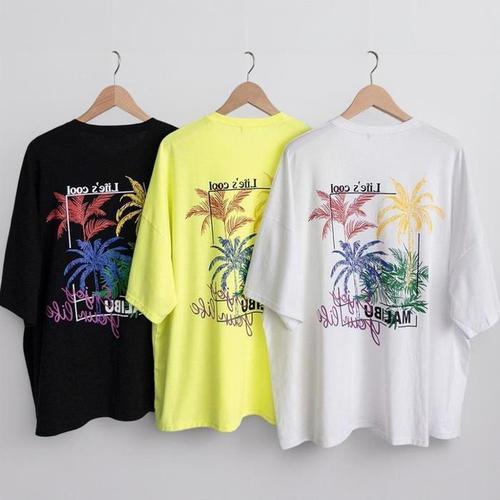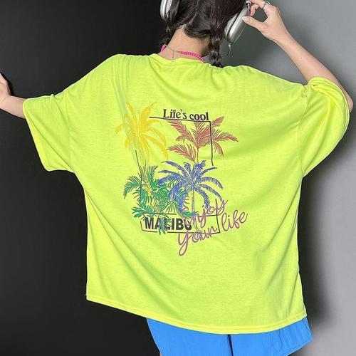 [신상오픈런]여성 휴가 패션 야자수 디자인 대형 형광 티셔츠 (38642548)