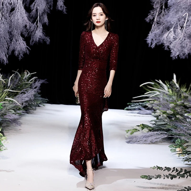 우아한 이브닝 가운 여성용 2025 신상 연회 개성 있는 피쉬테일 칵테일 반짝이 스팽글 호스티스 롱 드레스 이브닝웨어