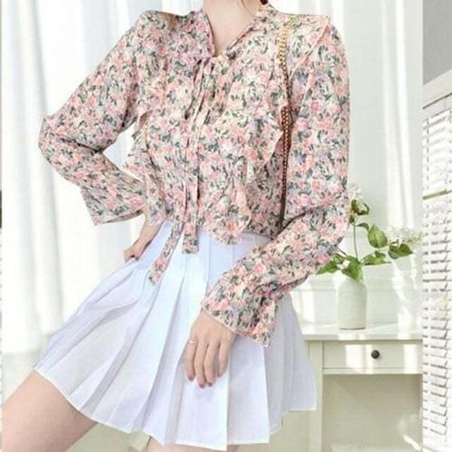 [셀럽하우스]해외여행 OXCL4327 바다 긴팔 여행 호캉스 플라워 블라우스 호