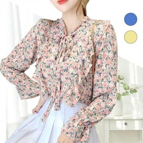 플라워 블라우스 호텔 여행 바다 호캉스 브이넥 긴팔 돌잔치 데이트 드레스 여자 리본