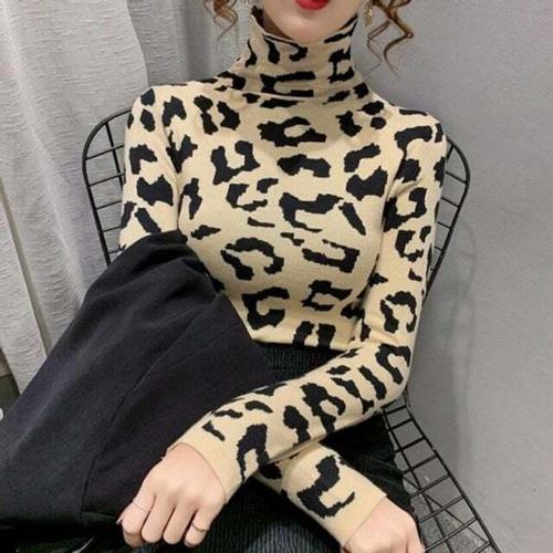 [셀럽하우스]패션 RQJU2643 이너 목폴라 니트 보온폴라 스웨터 호피무늬