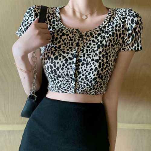 슈팅스타 / 라운드넥 크롭 숏 레오파드 호피 반팔