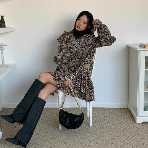 [신상오픈런]호피원피스 브이넥 프릴 캉캉 루즈핏 슬림 레오파드 (29414647)