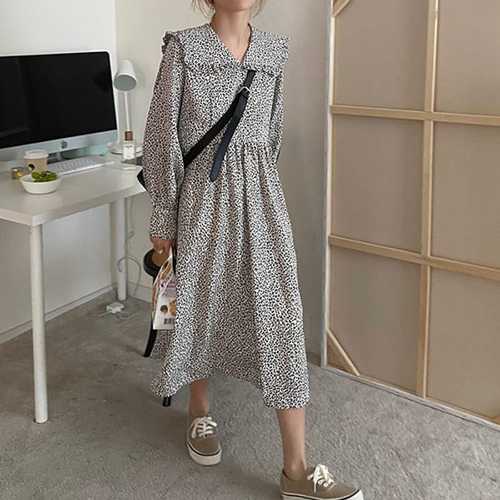슈팅스타 / 카라넥 빅카라 레오파드 호피 간절기 긴팔 원피스