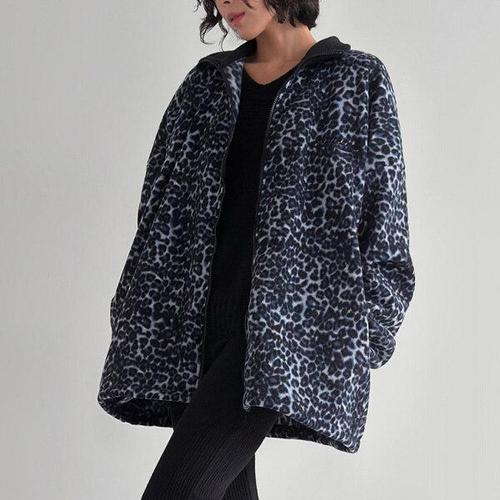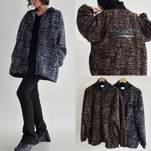 러브포텐 여성 빅사이즈 양털뽀글이 호피아노락집업 국산 오버핏
