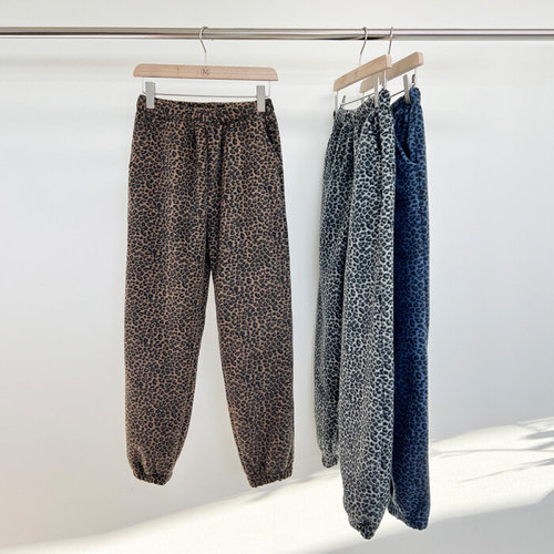 미즈큐즈 / 어흥 호피 레오파드 후리스 밴딩 기모 조거 팬츠