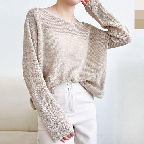 [에이치플러스몰]여자상의 여자보트넥시원한홀가먼트니트