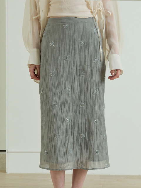 [릴리움] 델 마르 크링클 비즈 스커트_애쉬 카키