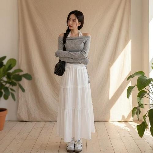 [다잇템][다잇템] 여성 슬림 골지 쁘띠 콘트라스트 볼드숄더 홀터 원피스_24317477_588872