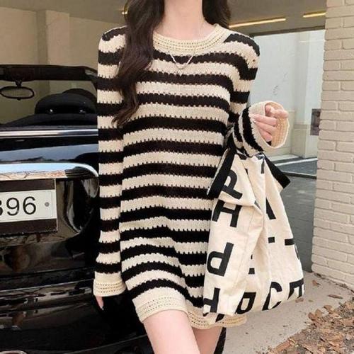[에이치플러스몰]세로줄 홀 미니원피스컴포트