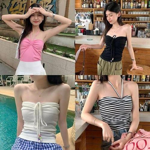 [에이치플러스몰]투웨이 여름 홀터넥 오프숄더 슬림 큐프셔링나시탑