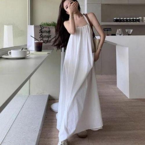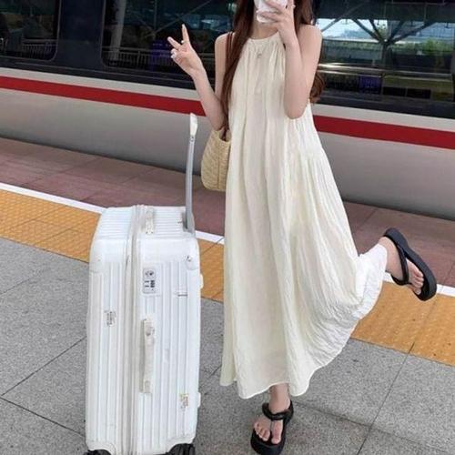 [에이치플러스몰]여름 인기 여성 홀터넥 뒷트임 감성 A라인 민소매 롱