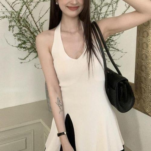 [에이치플러스몰]여름 여성 캐주얼 홀터넥 뒷트임 필수템 A라인 민소매