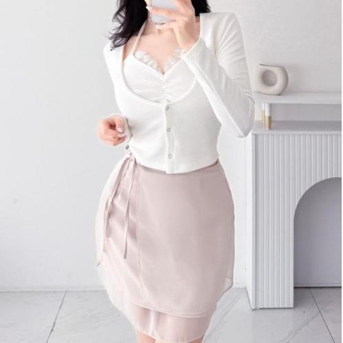[신상오픈런]여성용 레이스 홀터넥 긴팔 니트 나시 가디건 (33138379)