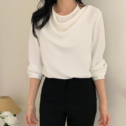 여성 홀터넥 포인트 오프숄더 화이트 블라우스