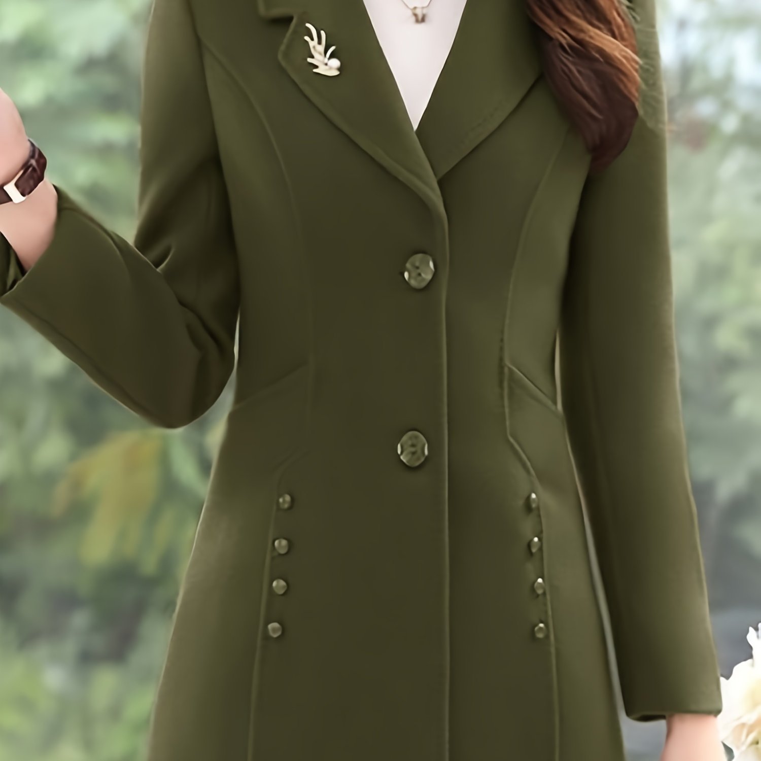 TEMU 여성용 우아한 폴리에스터 트렌치 코트, 단색, 긴 소매, 정상 길이, 스커트 핏, X-컨투어, 버튼 디테일, 스트레치되지 않는 소재, 직조, 봄/가을 외투