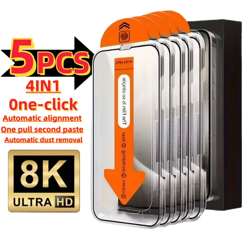 아이폰 17 16 프로 맥스 15 14 11 12 13 미니 XR XS용 5개입 HD 강화유리 스크린 보호필름, 스크래치 방지, 먼지 없는 설치
