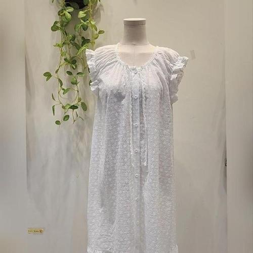 [신상오픈런]여성 화이트 민소매 리본 장식 펀칭 면 롱 드레스 (35333386)