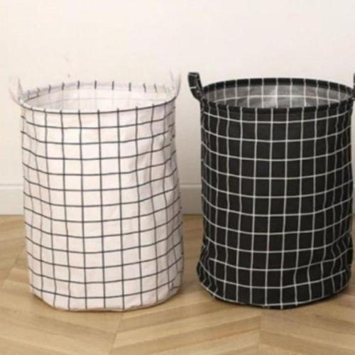 [셀러허브_여성트랜드패션]수납 바구니 세타 정리 흰색격자무늬 빨래 바스켓 장난감